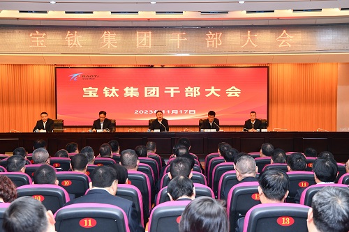 11月17日,公司在賓館七樓學(xué)術(shù)報(bào)告廳召開干部大會,宣布有關(guān)干部任職決定。陜西有色金屬集團(tuán)黨委書記、董事長吳群英出席會議并講話。陜西有色金屬集團(tuán)黨委副書記、董事、工會主席王小慶主持會議。會上,陜西有色金屬集團(tuán)總經(jīng)理助理、黨委組織部部長孟鋼宣布寶鈦集團(tuán)領(lǐng)導(dǎo)干部任職決定:雷讓岐不再擔(dān)任寶鈦集團(tuán)黨委委員、副書記,寶鈦集團(tuán)董事、總經(jīng)理,寶鈦股份董事長、董事職務(wù),退休。王儉任寶鈦集團(tuán)黨委委員、副書記,寶鈦集團(tuán)董事、總經(jīng)理。