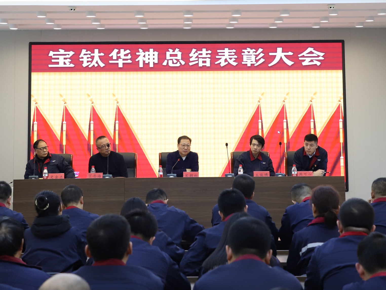 2024年1月9日10時(shí),寶鈦華神鈦業(yè)有限公司2023年度總結(jié)表彰大會(huì)在公司大會(huì)議室隆重召開(kāi)。公司董事會(huì)領(lǐng)導(dǎo)、公司領(lǐng)導(dǎo)、各部門(mén)及車(chē)間負(fù)責(zé)人、年度先進(jìn)優(yōu)秀集體代表、年度華神之星、一線員工代表參加會(huì)議。此次會(huì)議通過(guò)釘釘軟件全公司同步直播。副總經(jīng)理周可心和總經(jīng)理助理王俊博分別發(fā)表講話,對(duì)2023年工作進(jìn)行回顧總結(jié),對(duì)2024年工作進(jìn)行安排部署。副總經(jīng)理周可心宣讀表彰決定。公司對(duì)在2023年工作中作出突出貢獻(xiàn)的先進(jìn)優(yōu)秀集體和華神之星進(jìn)行了表彰;2名先進(jìn)優(yōu)秀集體代表和4名華神之星代表進(jìn)行了表態(tài)發(fā)言。董事長(zhǎng)宋朝利進(jìn)行總結(jié)講話。介紹了寶鈦股份基本情況,回顧了寶鈦華神2023年生產(chǎn)經(jīng)營(yíng)情況,指出要繼續(xù)加強(qiáng)產(chǎn)品質(zhì)量管理,樹(shù)立全員成本意識(shí),不斷提升市場(chǎng)競(jìng)爭(zhēng)力;要做好安全隱患預(yù)防整治,足夠重視安全環(huán)保問(wèn)題;加大科技研發(fā)投入,加強(qiáng)科技創(chuàng)新力度,實(shí)現(xiàn)企業(yè)長(zhǎng)足發(fā)展。